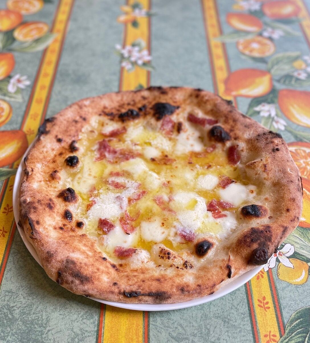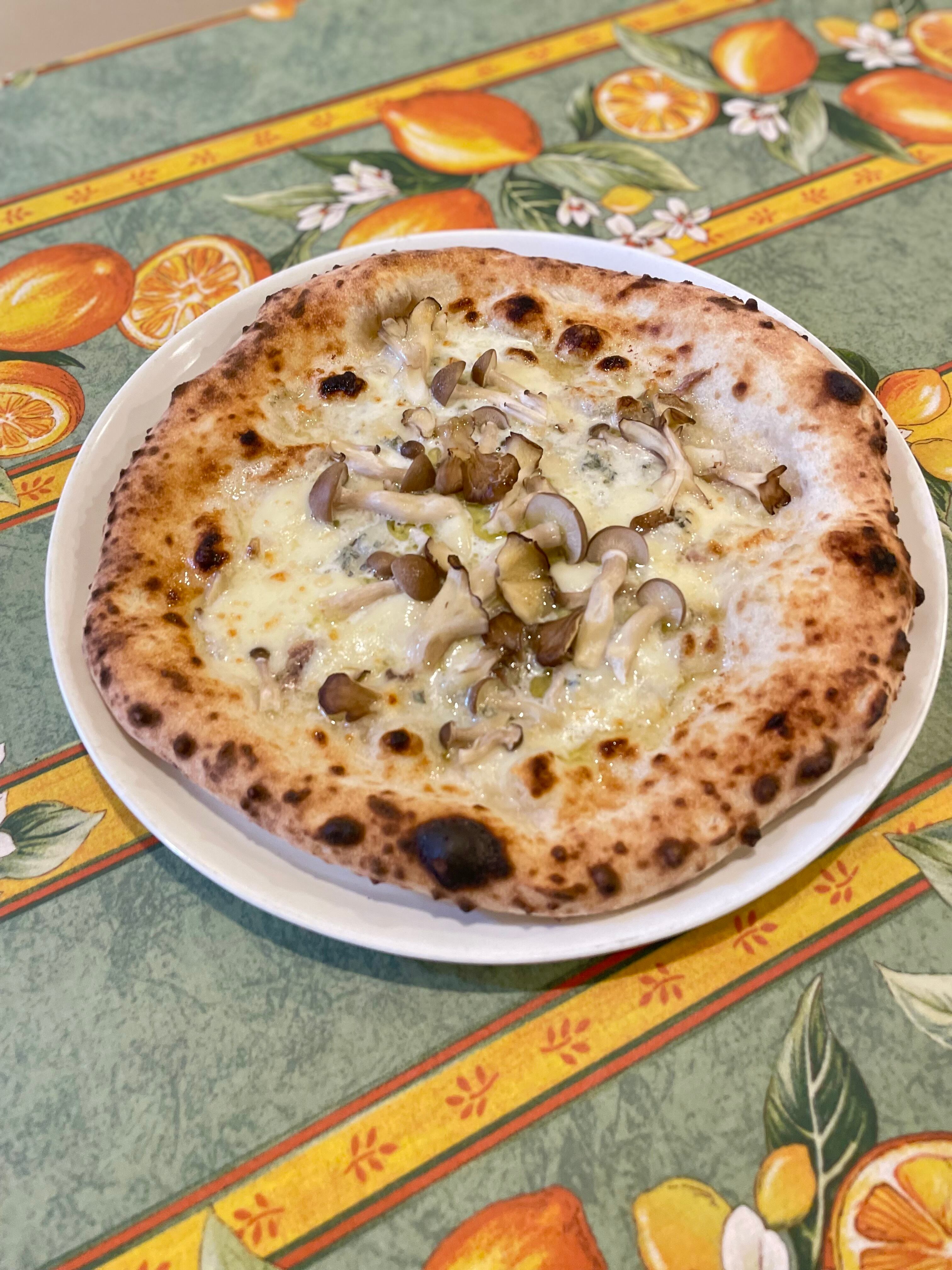 生クリーム、ゴルゴンゾーラ、トリュフオイルを使い、クリーミーで香り豊かなピッツァ